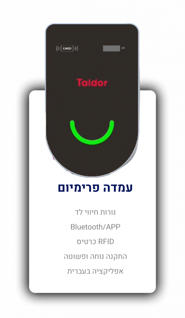 עמדת טעינה חכמה לרכבים חשמליים מבית NTechnology בעלת נורות חיווי, חיבור לאפליקציה ידידותית למשתמש בשפה העברית לשליטה וניהול העמדה. העמדה מתאימה לכל סוגי הרכבים החשמליים, עמידה למים ובעלת הספק טעינה גבוה. מצוידת בכבל טעינה באורך 6 מטרים ובעלת אפשרות תזמון טעינה.